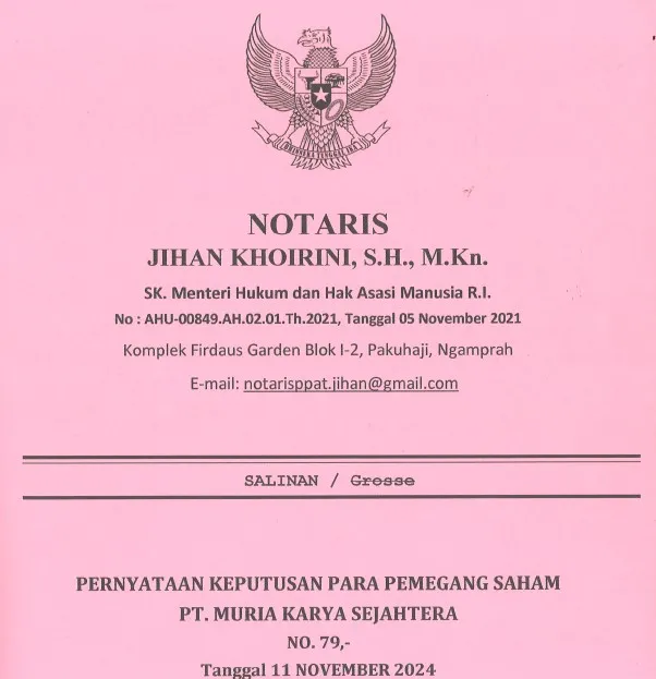 Kami akan menjadi perusahaan konstruksi terkemuka di Indonesia yang terus berkembang dalam memberikan dukungan infrastruktur di setiap wilayah. PT Muria Karya Sejahtera berdedikasi secara penuh untuk mewujudkan proyek yang dapat mendukung masa depan gemilang.