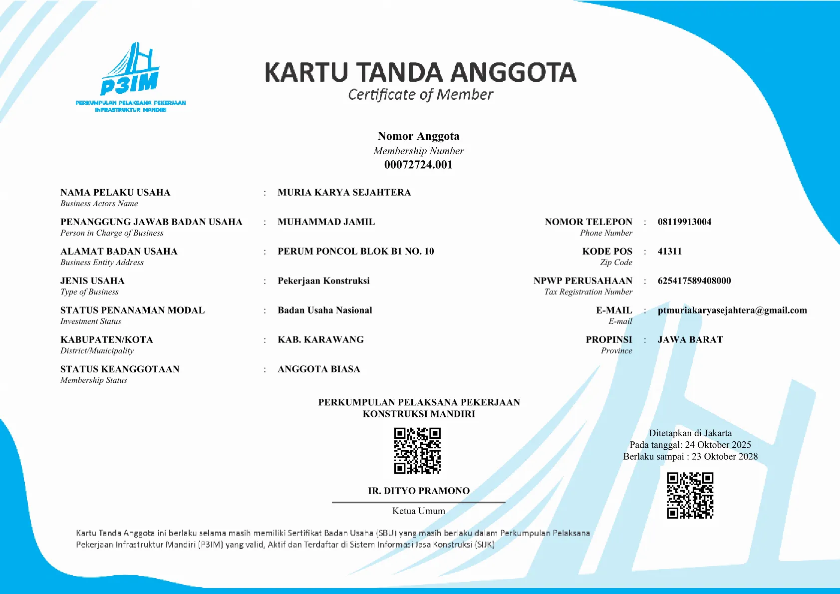 Adalah perusahaan konstruksi yang berdiri sejak tahun 2008. Kami telah memiliki pengalaman yang luas dalam menangani proyek-proyek konstruksi berskala kecil maupun besar. Selama didirikannya perusahaan ini, kami senantiasa memberikan solusi terkemuka untuk menjawab kebutuhan yang beragam. Dengan dukungan tim yang terampil dan ahli dalam bidangnya, kami akan menghadirkan hasil kerja terbaik bagi seluruh pelanggan kami.